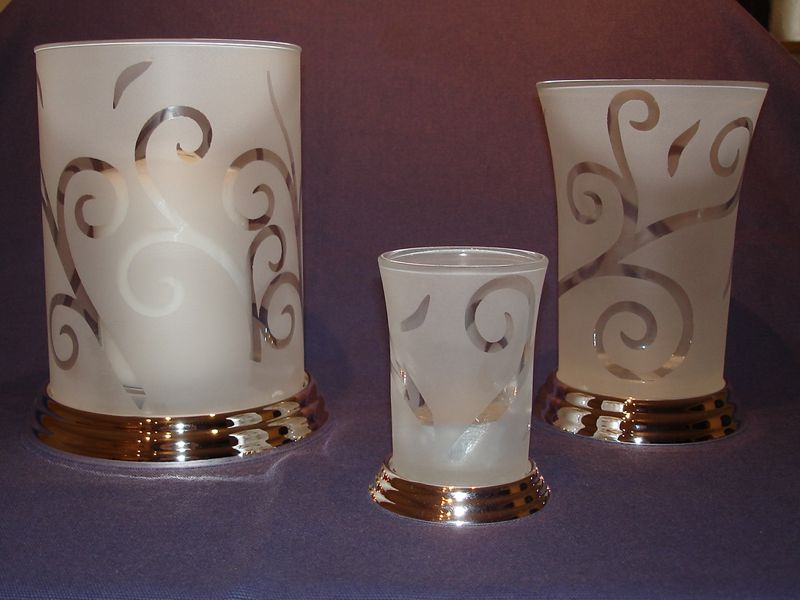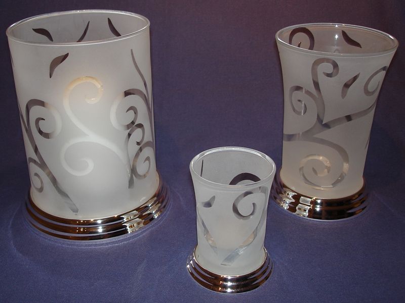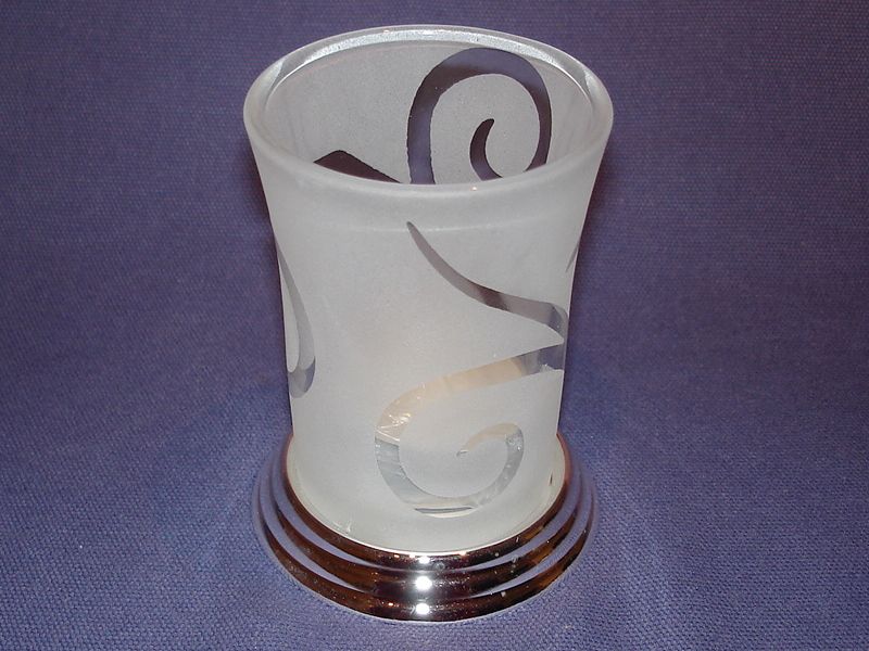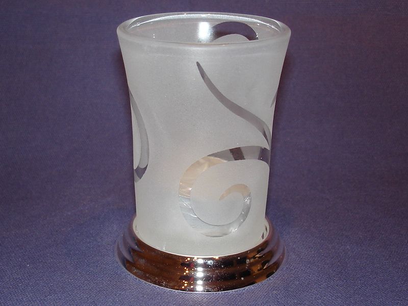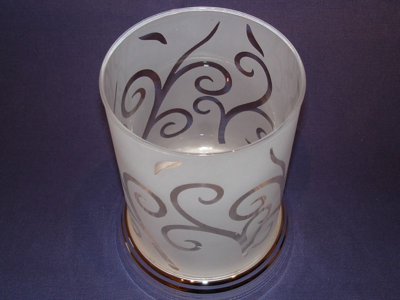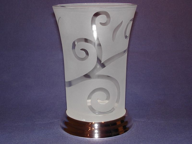 versilbert, Echtglas, Samtbezug am Fuß,