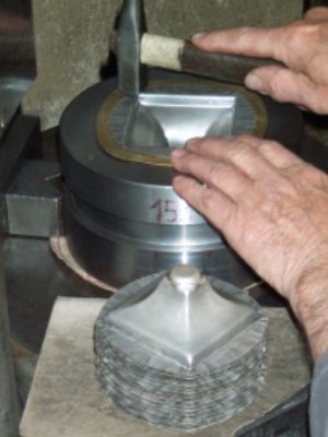 Hier ist die Enstehung eines Leuchter- und Vasenfusses in silber festgehalten. Diese Form ist sehr anspruchsvoll !
