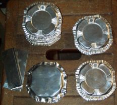 unten von links nach rechts: zugeschnittenes Silberblech, 1. Arbeitsgang, Zinnpfaffen